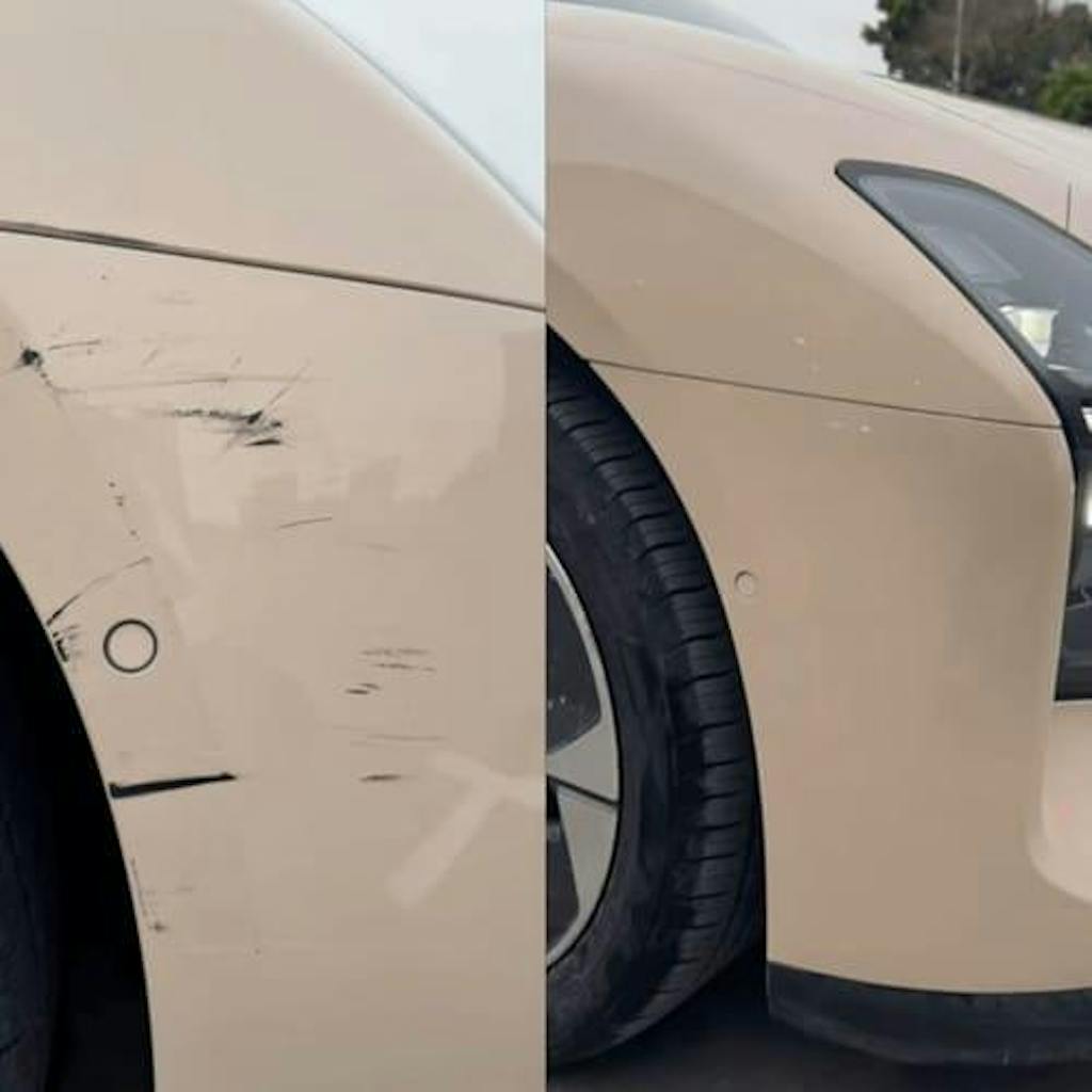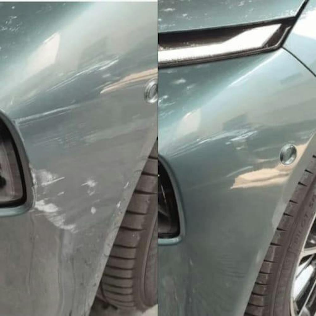 Résultat : une retouche uniforme et discrète qui atténue les rayures sans traces ni différence de teinte.